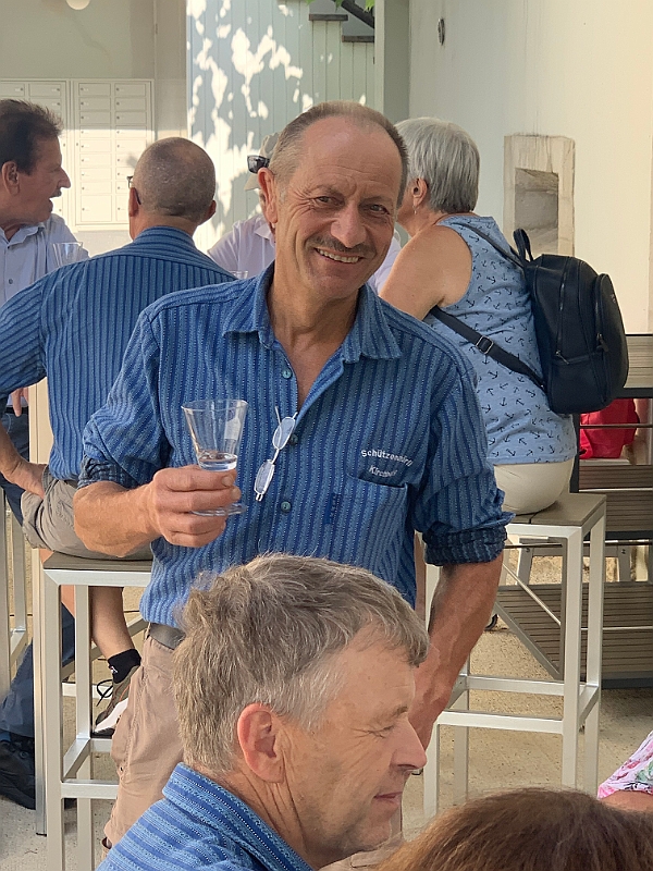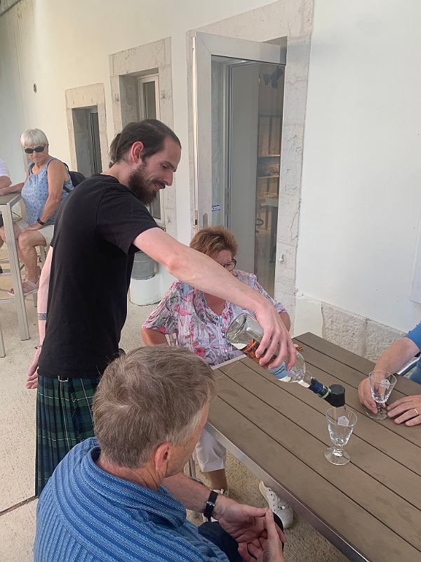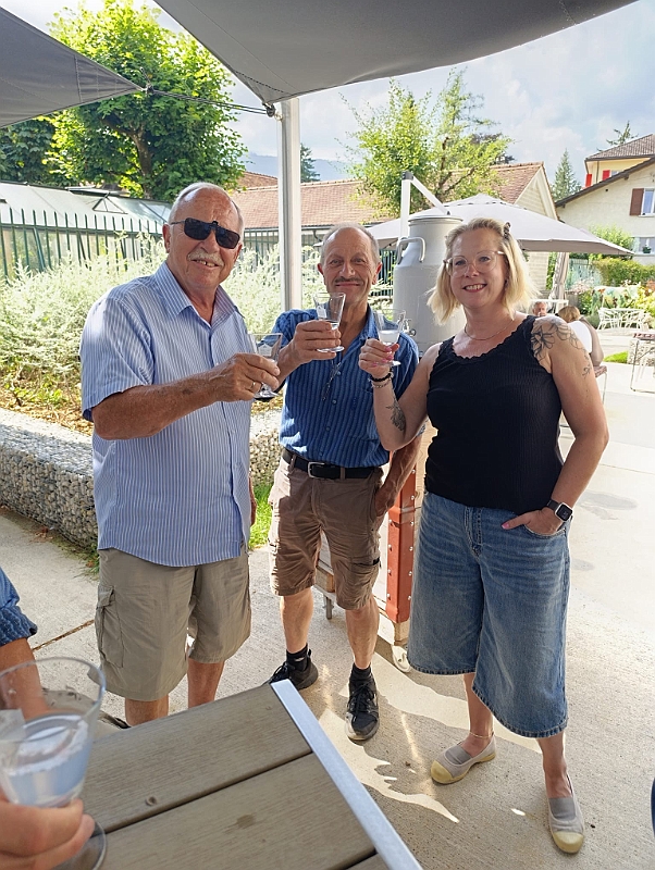 Die anschliessende Degustation ist natürlich bei allen Chörlern/innen sehr begehrt.. wollen wir doch wissen was das im Gaumen so ergibt.. verdünnt mit zirka zwei Teilen Wasser weisst sich das Getränk als genüsslicher Apero.. sieht nach der Zugabe von Wasser milchig aus. Und erinnert zudem so richtig an die «Lakritzen-Täfeli», die es früher gab. Nach 3 verschiedenen «Proben» schliessen wir diese Degustation ab :-) …. ein paar Flaschen gehen noch über den Ladentisch...