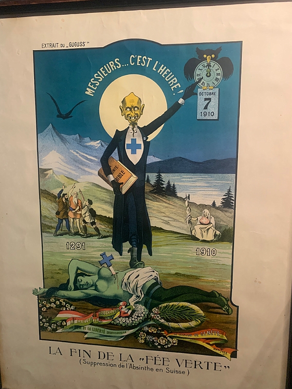 Die Führung durch das Museum ist lehrreich. Wir erfahren viel über die Herstellung des Absinthe..wer wusste schon, dass der «Tropfen» eigentlich aus reinem Alkohol und (in der Regel) aus drei bis vier verschiedenen Kreuterextrakten besteht. Es gibt etwelche Arten wie der «Schnaps» daher kommt. – Eigentlich ist uns die «grüne Fee» am besten bekannt. - Diese Getränke gibt’s laut Museumsführer in verschiedenen Prozenhaltigkeiten.. Ab 30 bis fast 80% Alkoholgehalt. Das muss doch verdünnt werden..